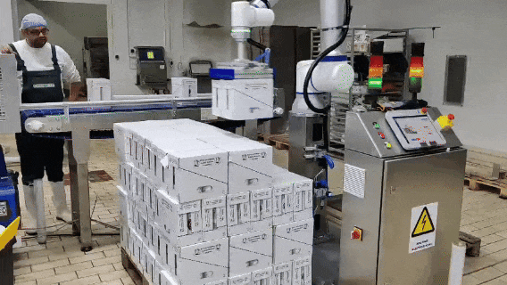 客戶為希臘某龍頭乳制品企業,日產能超10000箱,覆蓋常溫奶、酸奶、奶酪等多條生產線。因生產車間屬于低溫、高濕度環境,艾利特機器人為其提供了食品級不銹鋼碼垛工作站,實現了優于以往機型的衛生和動作性能,具有極佳的耐腐蝕性,便于客戶清潔。