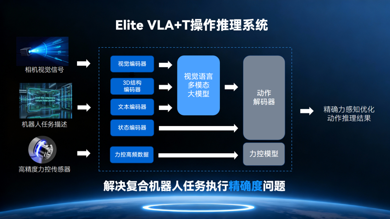 在決策與規劃層,實現“任務指令”到“可執行動作”的精準翻譯。艾利特創新性地構建了 “VLA + T”的高精度力控動作推理模型,在保障操作泛化性的同時,提升了操作的精確性和任務完成率,直接解決了行業痛點。