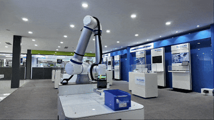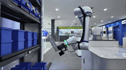 復合機器人實時接收指令,自主導航至貨架區,通過掃碼精準識別物料位置,抓取對應料盒,沿最優路徑送達工位、放置指定庫位,系統自動確認補貨完成,機器人返回等待區。