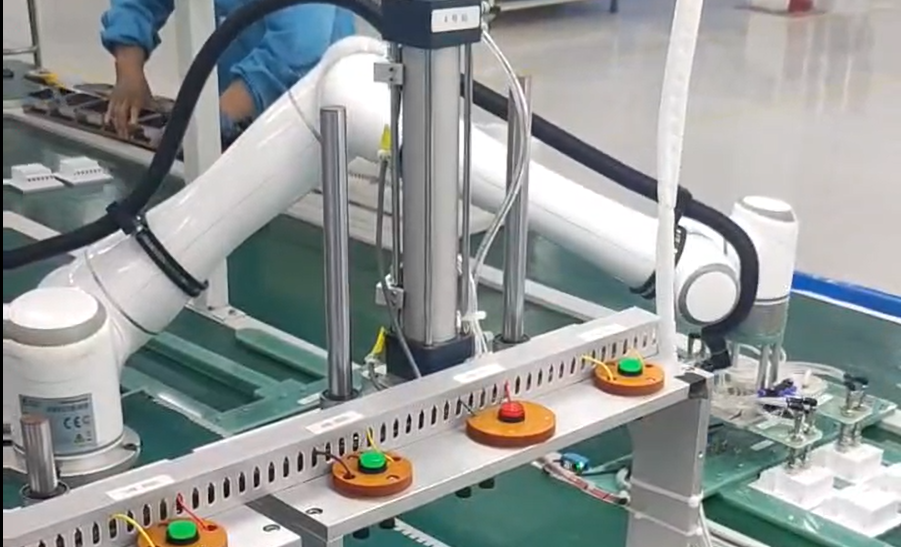 因此,客戶希望引入協作機器人來逐步替代人工進行電源開關取放及檢測。艾利特協作機器人結構緊湊、體積小巧、人機交互安全,成自動化產線改造首選。