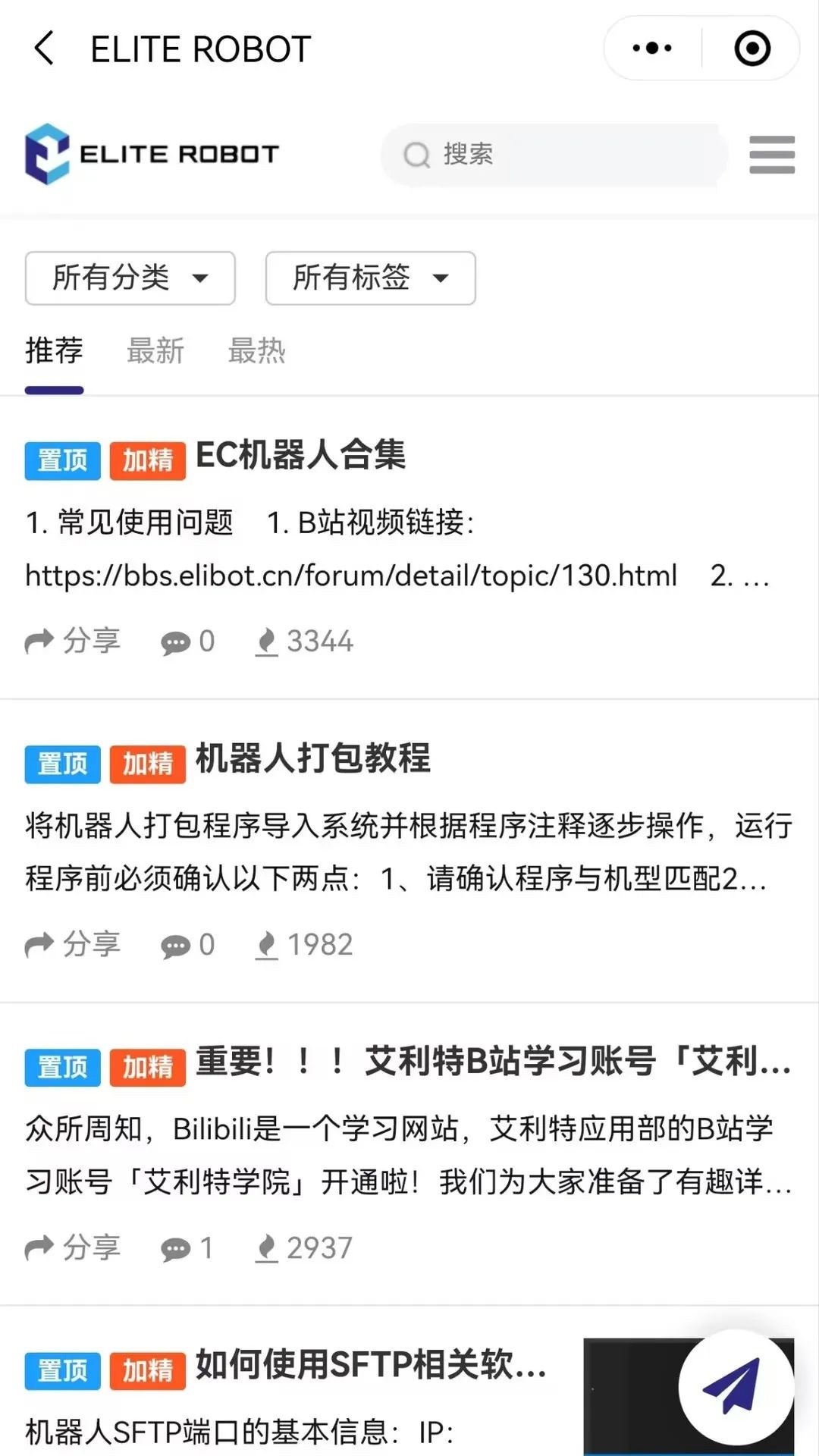 為幫助客戶提供日常技術支持,保證高效性與時效性。艾利特技術工程師還在論壇進行在線答疑、交流,論壇用戶可就艾利特機器人產品相關的任何問題,發起提問,艾利特技術工程師會在24小時內及時響應。