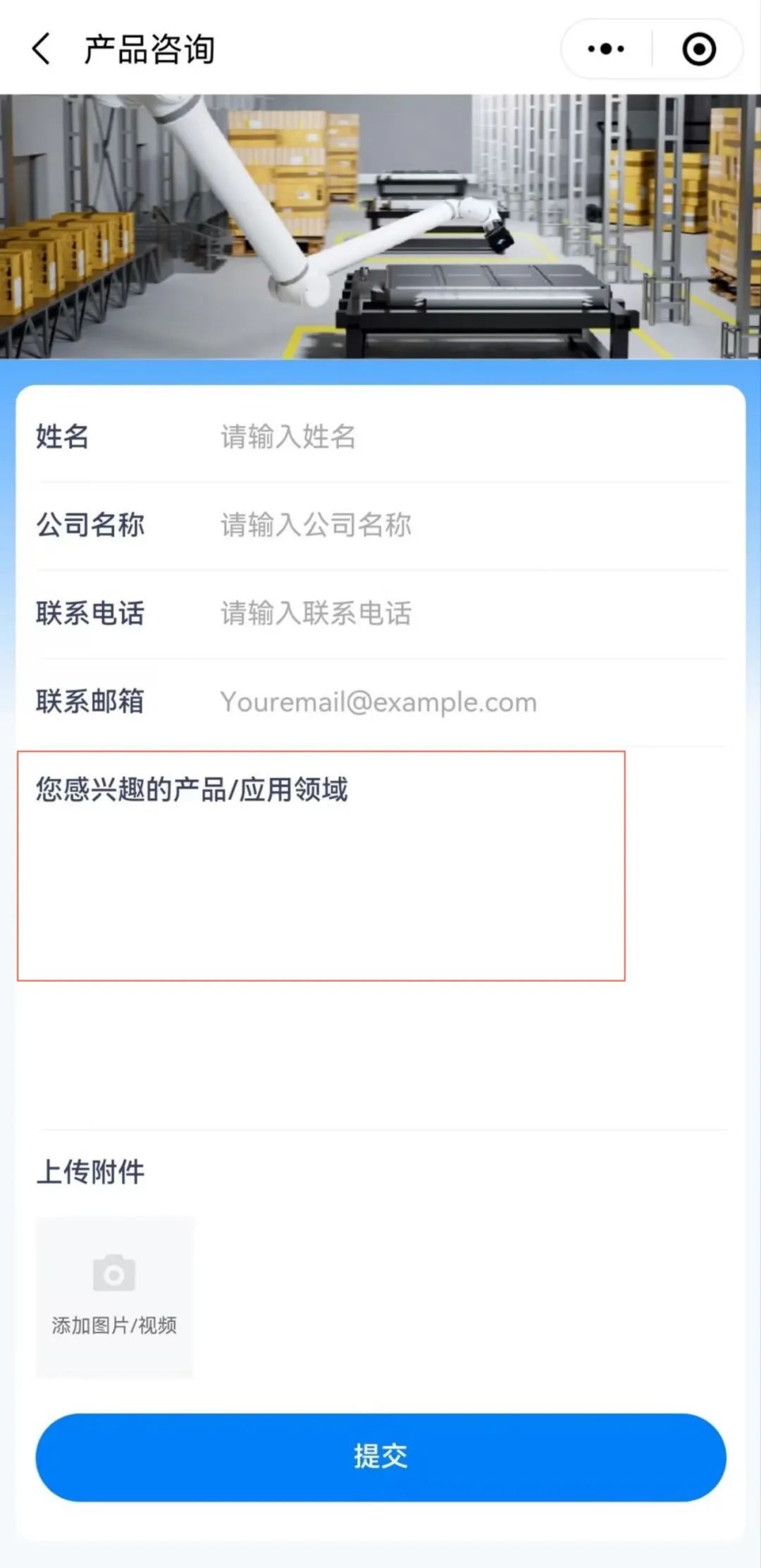 產品咨詢提交界面